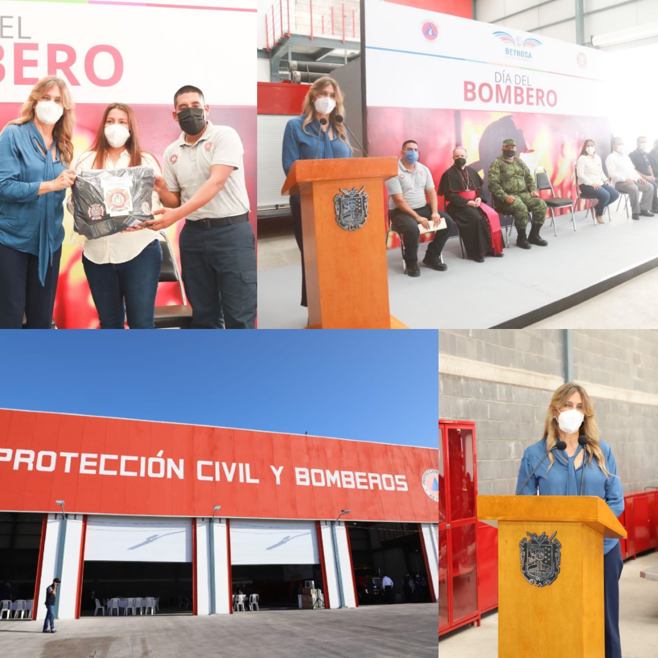 Reynosa, Tamaulipas. -En el marco de la celebración del Día del Bombero que se festeja los días 22 de agosto, elementos de esta corporación recibieron un reconocimiento por su labor por parte de la alcaldesa de esta frontera, Maki Ortiz Domínguez.