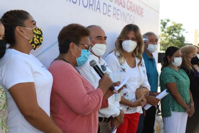 “En 5 años hemos logrado el programa de obras más grande en la historia de Reynosa, con más de 6,500 Millones de Pesos, como nunca antes porque el rezago que hay en la ciudad es de 30 a 40 años”, dijo la Alcaldesa ante los colonos que se reunieron para cortar con ella el listón inaugural de una de las 473 nuevas pavimentaciones; correspondiendo a las colonias aledañas una inversión de 47 Millones 625 Mil 225 Pesos.