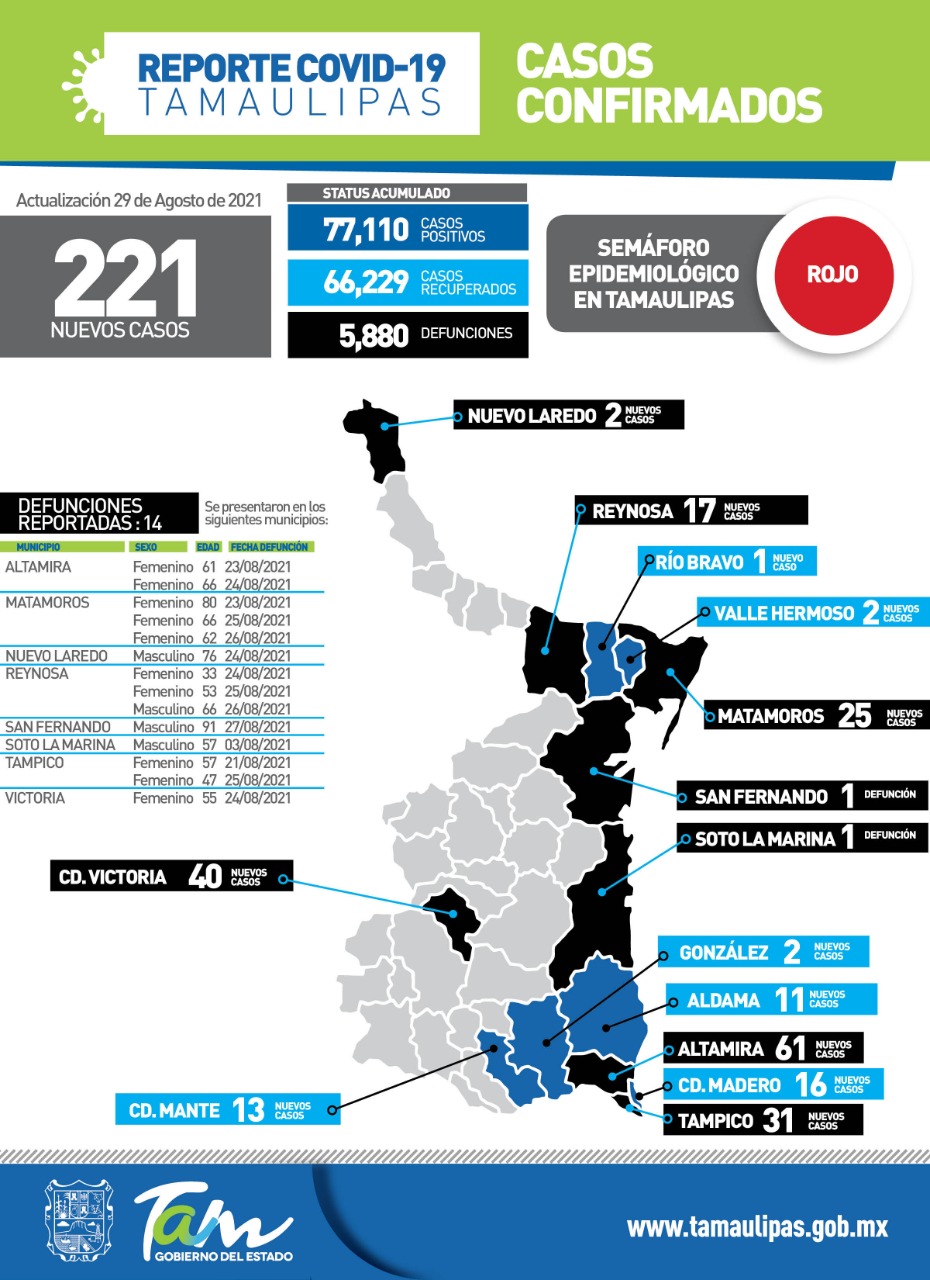 221 nuevos casos y 14 fallecimientos por el virus