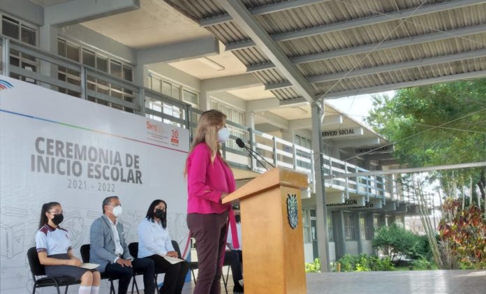Lo anterior al acudir al evento protocolario del arranque del ciclo escolar 2021- 2022 en el CETIS 71. Ahí la edil, recordó que no solo se apoyo a los alumnos de todos lo niveles de educación para que puedan seguir con sus estudios, sino que también se apoya a los egresados de las Universidades con el pago de la titulación.