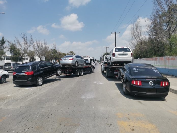 Un total de 12 unidades habían sido programadas para el traslado con grúas tipo plataforma hacia el corralón de la Secretaría de Finanzas, pero solo cinco fueron las que se llevaron al patio estatal ubicado en la Avenida Lauro Villar con Fidencio Trejo.