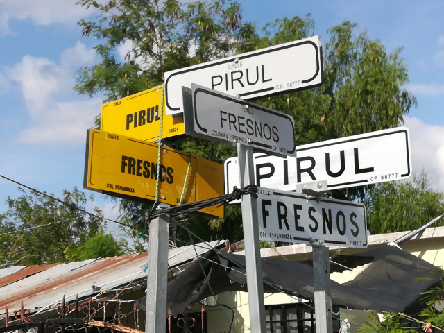 Por ejemplo, en la calle Pirul y Fresnos de la colonia Esperanza solo para identificar dicho crucero se encuentran ¡seis nomenclaturas!, es decir seis placas que identifican ambas calles.