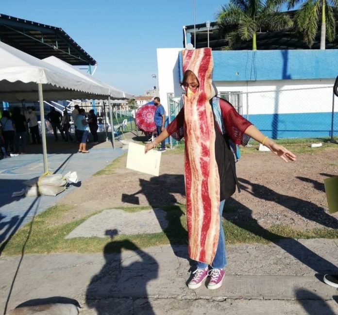 Tampico, Tamaulipas.-Con gran afluencia de jóvenes de 18 a 29 años de edad y mujeres embarazadas, inició hoy la vacunación contra el coronavirus, en su primera dosis de AstraZeneca, en Tampico, algunos de los cuáles en el polideportivo fueron acompañados por su mamá; mientras que en la sede de la Unidad Deportiva de Puertas Coloradas dos fueron disfrazados, una chica de tocino.