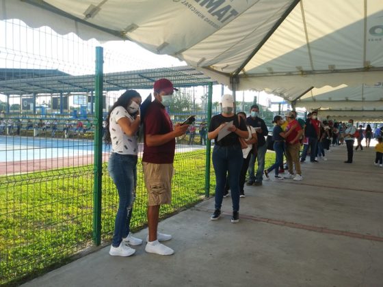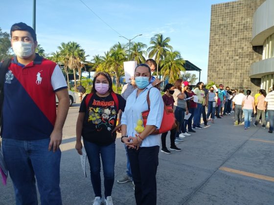 En la fila había residentes de Altamira y del Moralillo, Veracruz, pero personal de Bienestar Federal les informó que sólo se esta vacunando a los de Tampico.