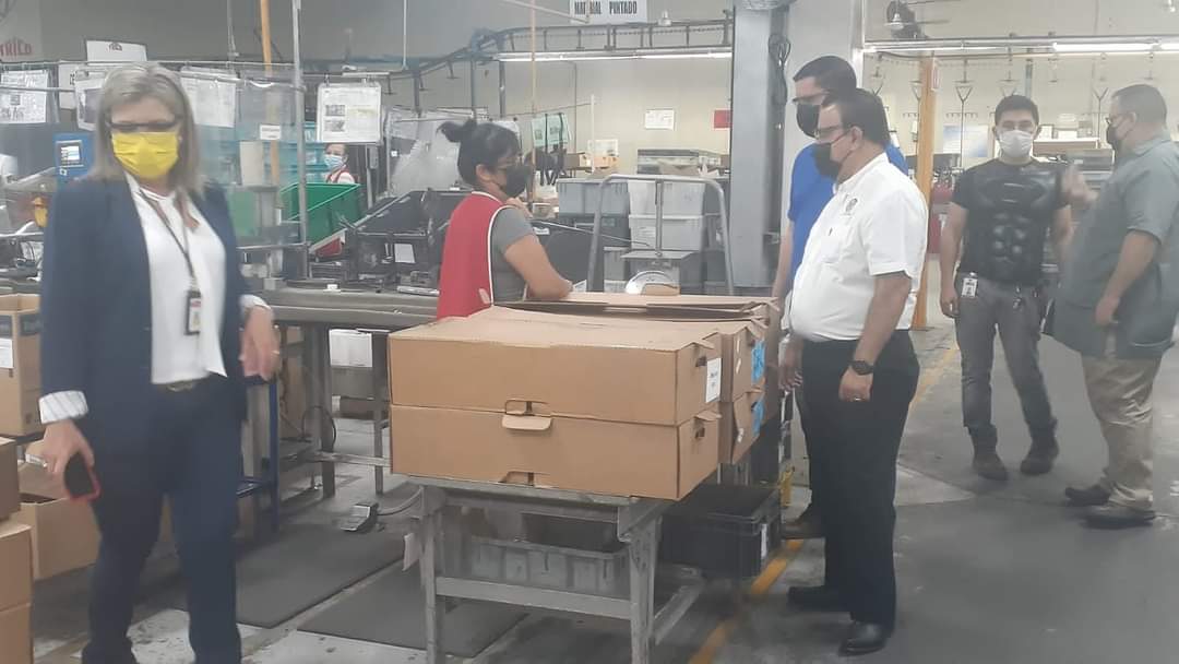 Matamoros, Tamaulipas.- Con el motivo de verificar que las áreas donde se encuentran laborando los trabajadores, cumplan con las medidas de seguridad, el Secretario General del SJOIIM Juan Villafuerte Morales, recorrió la empresa Trico acompañado de integrantes de la Comisión de Trabajo, Comisión de Seguridad e Higiene y el Delegado de dicha empresa Enrique Silva Gómez.