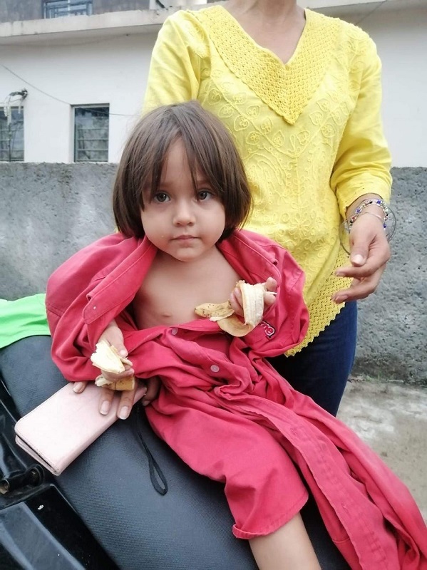 La pequeña fue encontrada en la colonia Benito Juárez, por un joven que se identificó como Ramón, quien dio parte a las autoridades y la cuidó hasta que llegaron por ella.