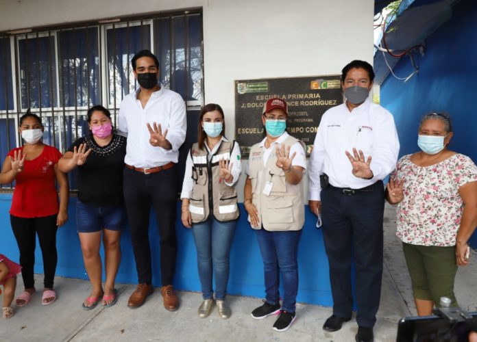 En su recorrido de supervisión, el Delegado Rodolfo González Valderrama y el Presidente Carlos Peña Ortiz, tuvieron la oportunidad de intercambiar impresiones con los Comités, compuestos por padres de familia, que administran los recursos para el mejoramiento de los planteles educativos.