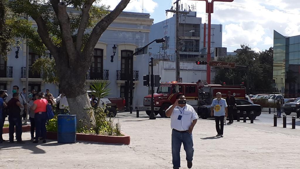 Matamoros, Tamaulipas. – La tarde de este martes empleados y funcionarios del edificio del Ayuntamiento de Matamoros, fueron evacuados por una llamada en falso de un supuesto artefacto explosivo, a lo cual elementos de Protección Civil Municipal y Bomberos actuaron de inmediato descartando esta situación.