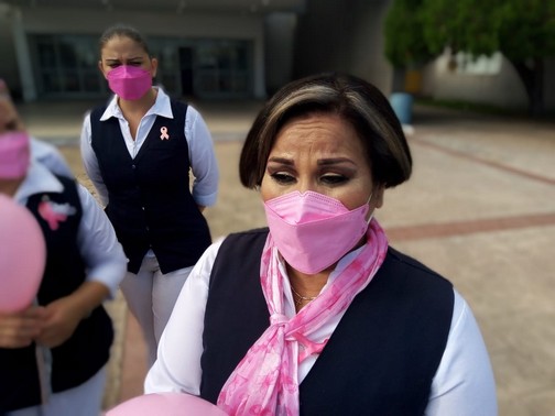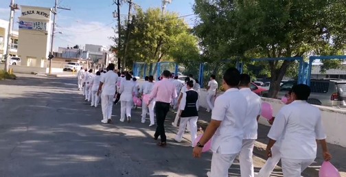 Matamoros, Tamaulipas.-Con una caminata alrededor del Hospital General Alfredo Pumarejo en esta frontera, personal médico de esta institución conmemoraron el día internacional de la lucha contra el Cáncer de Mama y Cervicouterino.