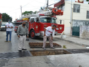 “Nos reportaron un perrito atorado en la alcantarilla de aquí, se escucha que esta ladrando, un vecino se encuentra de aquel lado y los demás residentes nos están colaborando. Nuestros amigos de bomberos que siempre nos apoyan por ahí en esta cuestión de rescates y pues estamos procediendo a localizar al perrito porque como les digo esta larga la tirada y por el mismo espacio que hay hace eco el ladrido del perrito y es difícil ubicar en que espacio se encuentra”.
