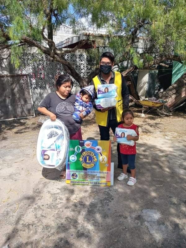 Para realizar la entrega a los interesados se trasladaron los “leones” Marypaz y Alfredo, quienes efectuaron la entrega del apoyo de un nebulizador, medicamentos y una canastilla con artículos de higiene y uso para él bebe.