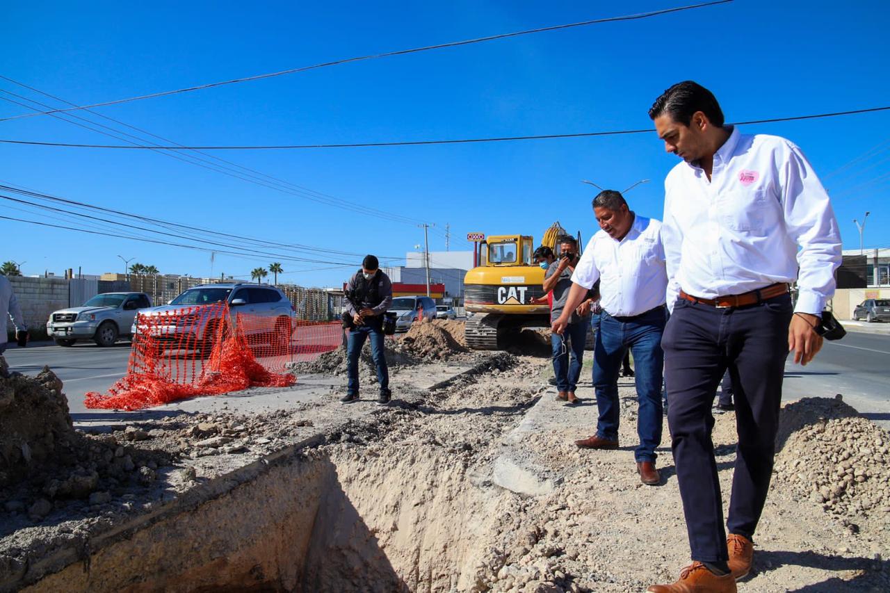 Supervisa Alcalde Carlos Peña Ortiz, trabajos de reposición de tubo de drenaje de 24 pulgadas sobre el blvd. Hidalgo.