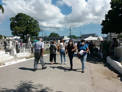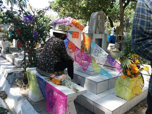 Las personas iban y dejaban sus arreglos florales a sus difuntos, la mayoría en familia y limpiaban su tumba y las adornaban, algunos se quedaron algunos momentos orando por ellos.