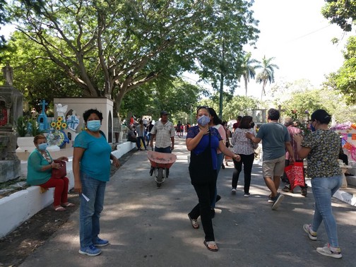 Este día la gente se atrevió a salir y visitar las tumbas de sus familiares en los diferentes panteones de esta ciudad portando cubrebocas para evitar riesgos de contagio, luego de que el año pasado no pudieron hacerlo.