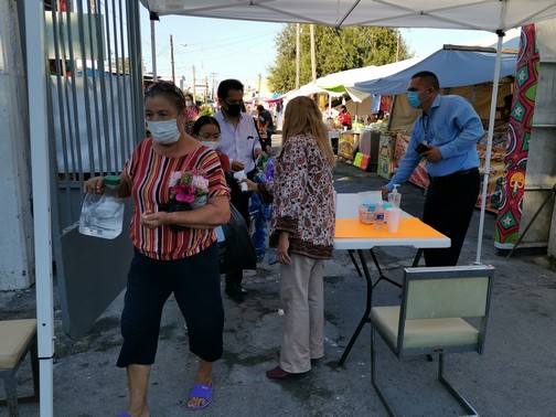 Se instaló un filtro sanitario en el acceso del panteón, donde se les coloca gel antibacterial, se revisa que traigan cubrebocas y se les toma la temperatura, como parte de los protocolos de salud que se implantaron para la apertura de los cementerios para estas fechas.