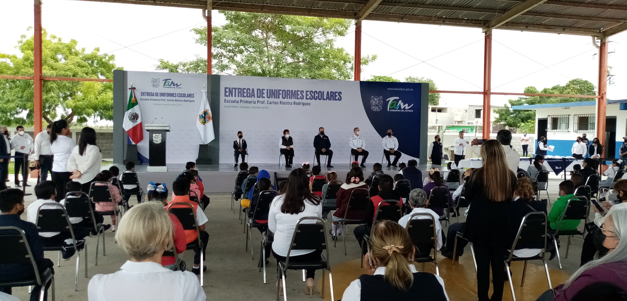 Fue en la escuela primaria “Carlos Riestra”, de la colonia Emiliano Zapata de Ciudad Madero, donde se realizó la ceremonia protocolaria y entrega simbólica de los uniformes para los alumnos de escuelas públicas de Tampico, Madero y Altamira.