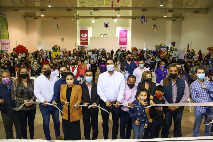 La Expo Comercial Navideña 2021 fue inaugurada por el Presidente Municipal Carlos Peña Ortiz, con la finalidad de impulsar la actividad mercantil de la ciudad este sábado 11 de diciembre y que estará disponible hasta las 7:00 de la noche con una gran cantidad de productos en el Auditorio del bulevar Hidalgo y avenida Vista Hermosa.