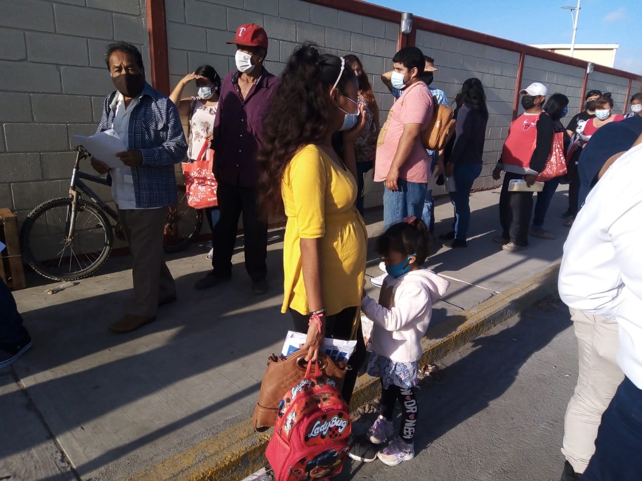 Después del llegado del informe llegó el esposo de Andrea y pudo dar apoyo a su pareja, quien se relajo al tener el respaldo de su compañero de vida, la señora y su hija se retiraron del plantel educativo y él se quedó en la fila para que le aplicarán la vacuna contra el Covid-19.