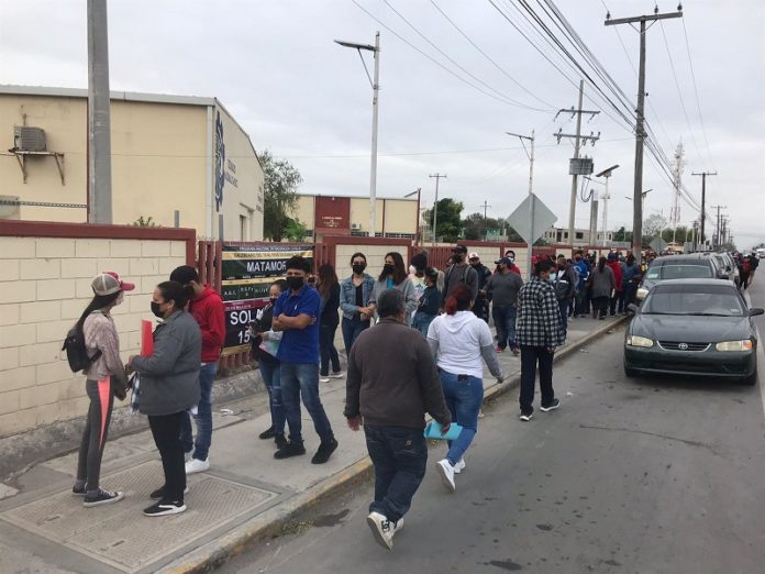 Matamoros, Tamaulipas. – Durante el primer día de campaña de vacunación contra el Coronavirus, decenas de padres de familias provocarlon aglomeramientos en el acceso principal y salida del Instituto Tecnológico, en donde ingresaban los jóvenes de 15 a 17 años a vacunarse.