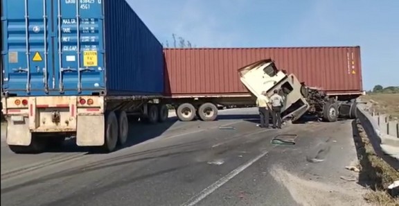 Hasta el momento se desconoce el origen de este percance vial, lo que se puede apreciar en las imágenes que se han compartido en medios digitales es el impacto del tráiler contra la barrera metálica de contención, impacto que destrozo la cabina.