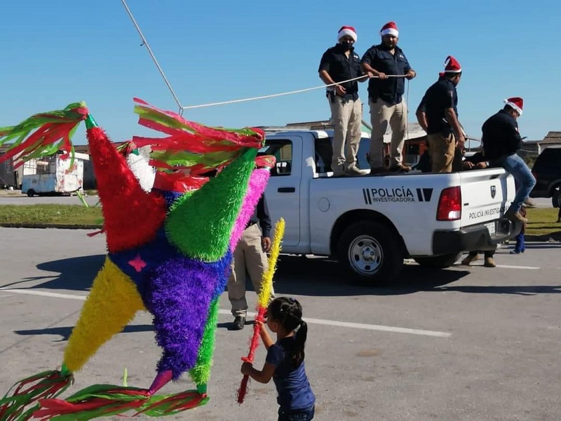 Matamoros, Tamaulipas.- Los elementos de la Policía Investigadora de la Fiscalía General de Justicia (FGJ) de este municipio se organizaron para realizarle una gran posada a los niños de la playa Bagdad.