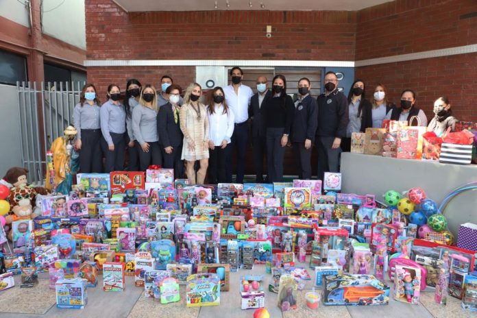 El Presidente Municipal, Carlos Peña Ortiz y la directora general, Avelina María Escobar Isassi, en representación del Presidente del Patronato del DIF, Carlos Luis Peña Garza, recibieron la donación de juguetes y agradecieron al Colegio Mexicano por apoyar a las familias.