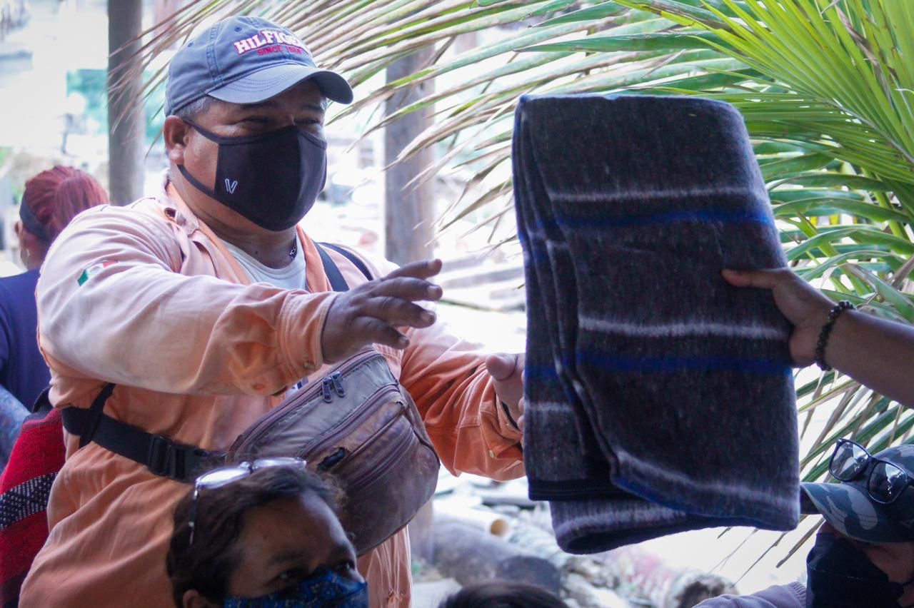 Madero, Tamaulipas.- Para ayudarlos a enfrentar las inclemencias del tiempo que se presentan en la zona sur con la llegada de los frentes fríos, el diputado local Carlos Fernandez Altamirano, entregó cobertores a las familias de los trabajadores de Playa Miramar.