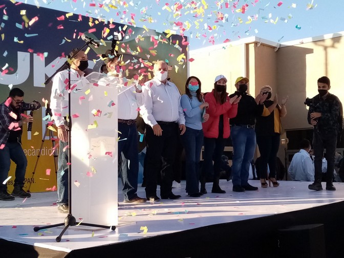 A su diestra se colocó el dirigente municipal del PRI, Jesús Valdez Zermeño, quien inició con un breve discurso en el que dijo que el ambiente formado por la militancia de los tres partidos será el que llevará al triunfo al Truko en las elecciones del 5 de junio.