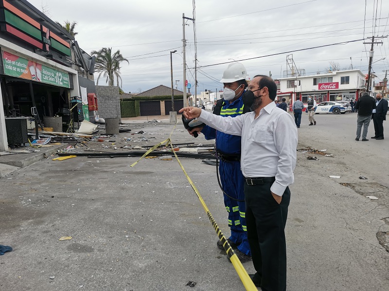 En el lugar de la explosión registrado en el 7-Eleven, los integrantes del Cre tomaron fotografías, datos y verificaron las líneas de tubería de gas por donde estaban colocadas e incluso se revisó el medidor del vecino afectado por el suceso.