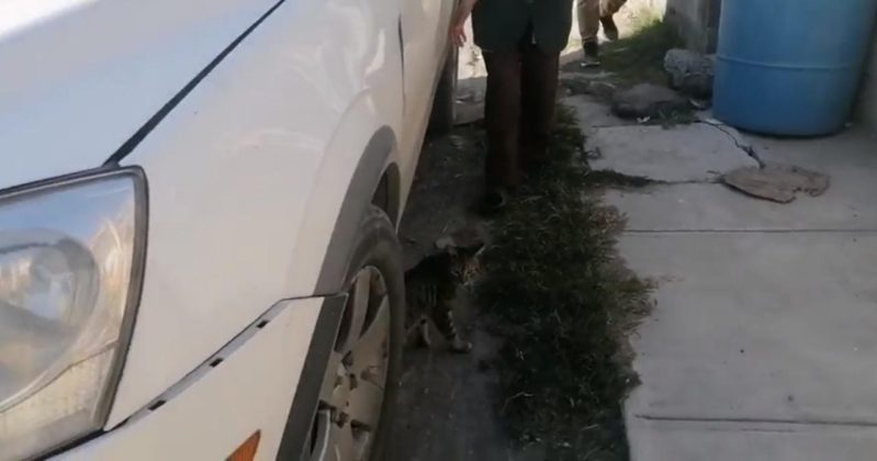 Francisco Hernández fue el héroe que llegó hasta la calle Declaración de Principios de la colonia Independencia en Matamoros, quien en la canastilla de la unidad marcada con el número 104980 logró alcanzar al felino y lo puso a salvo.