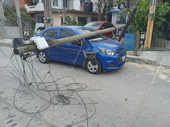 Fue a las 02:38 horas cuando a los cuerpos de auxilio les repoetaron la caísa de un árbol en calle Mango entre Laguna y 12 de Septiembre de la colonia Ampliación Unidad Modelo y dos minutos después se registró la caída de un poste de TELMEX sobre un vehículo, en calle 5 y Avenida San Pedro de la colonia Arenal.