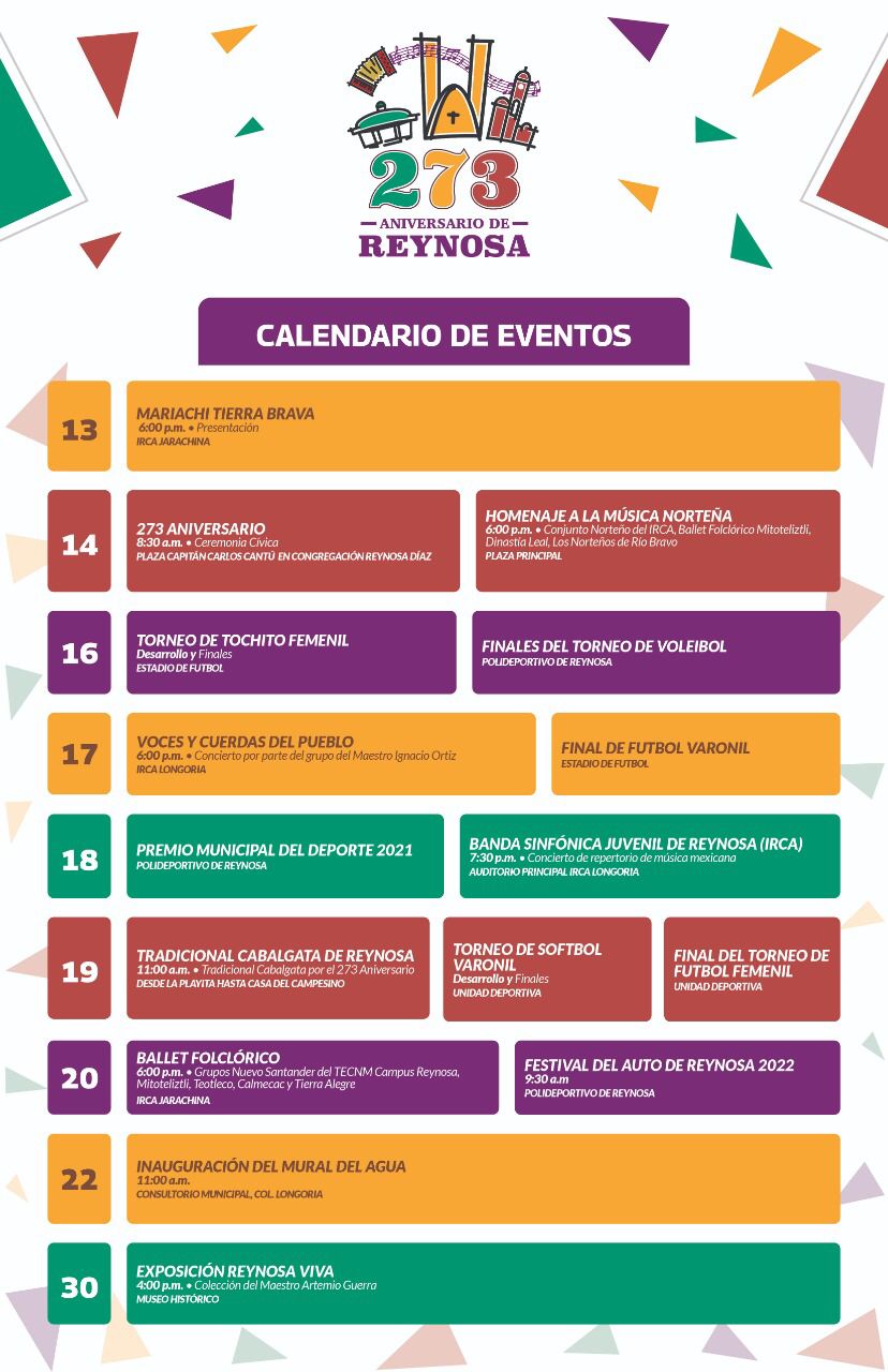 Es así como la convocatoria se extiende a los reynosenses para conmemorar y participar en este 273 aniversario.