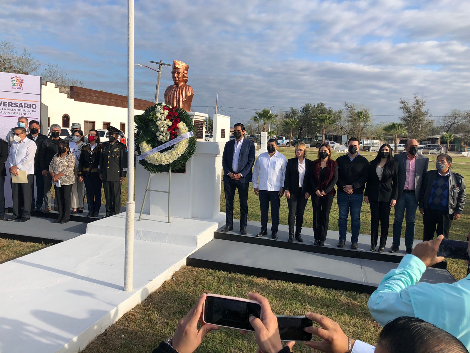 El Presidente Municipal, Carlos Peña Ortiz, conmemoró el 273 Aniversario de la Fundación de Reynosa, en el poblado en que el Capitán Carlos Cantú por indicaciones de Don José de Escandón estableciera las raíces de esta noble y productiva tierra de hombres y mujeres progresistas.