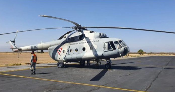 Cd. Victoria, Tamaulipas.-Un helicóptero MI-1716, perteneciente al escuadrón aéreo 303, de la Fuerza Aérea Mexicana se sumó a las labores de combate del incendio que se registra en la biósfera El Cielo, en el municipio de Gómez Farías.