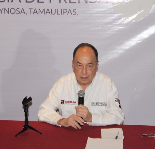 Alfonso GómezMonroy, gerente general de la Comapa en Reynosa, expuso en conferencia de prensa que se ha iniciado con una estrategia de uso racional del agua en la ciudad, evitar su derroche y mantener limpias las redes de suministro.