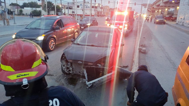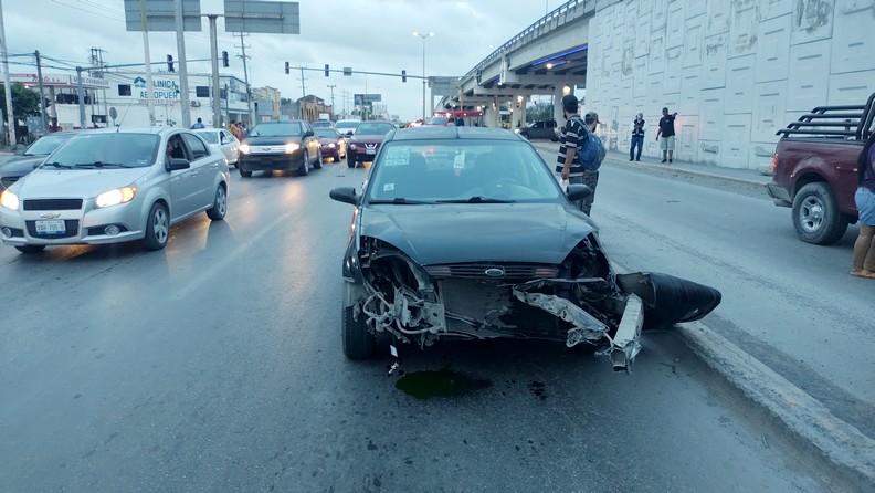 Reynosa, Tamaulipas.-Aparatoso accidente vial se registro en una concurrida carretera, donde dejara cuantiosos daños materiales, caos vehicular, así como varias personas lesionadas no de gravedad.