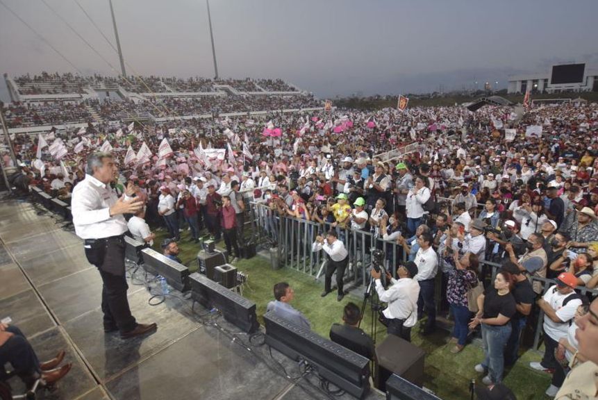 Ante una histórica concentración de más de 30 mil personas en el Polideportivo de esta ciudad, en su quinto cierre regional de campaña, el candidato de Morena, PVEM y PT a la gubernatura convocó a salir a votar masivamente para recoger la gran cosecha que se ha sembrado a lo largo de esta campaña.
