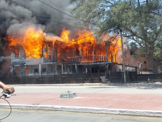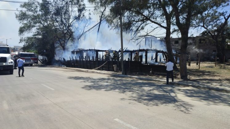 Madero, Tamaulipas.-Se registró un incendio en una antigua casa ubicada en la entrada a playa Miramar, a escasos metros del monumento a la sirena.