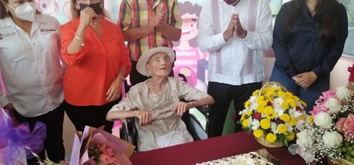Altamira, Tamaulipas.-Una copita de alcohol nunca cae mal, esta metáfora, en ciertos casos es una realidad, les presentamos a María Cruz de la Cruz Cabrera, residente de Santa Amalia de Altamira, quién durante este lunes, cumplió 105 años. Su familia, amigos, vecinos y demás conocidos lograron acompañarla en su festejo, ahí uno de sus hijos reveló el secreto de tantos años de vida y salud de Doña Mary, una copita de pulque de maguey.