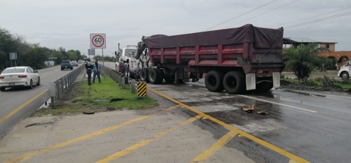 En este incidente, que involucra un trailer doble góndola cargado con varias toneladas de coque, trascendieron varias versiones, una de ellas la falla en el sistema de anclaje del dolly, y la segunda teoría, una mala maniobra de una segunda unidad que salia del hotel para incorporarse a la autopista.
