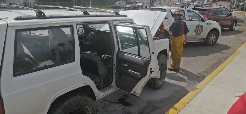 Personal de protección civil municipal y Bomberos se constituyeron al lugar de los hechos dónde un particular con apoyo de un extintor logro controlar el fuego en el interior del vehículo de doble tracción.