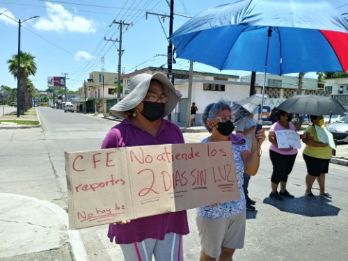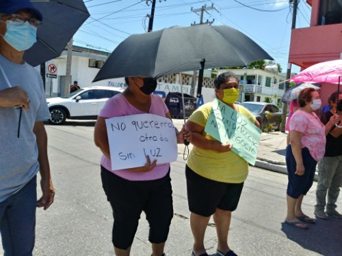 Otra señora Rosa Isela Ruiz Mar, dijo: “Nos vamos a chedraui a refrescarnos un ratito, pero para donde nos hacemos no podemos dormir, hace mucho calor, otra noche más no vamos aguantar, todos hemos reportado, y solo nos dicen que van a venir y no vienen, ya tenemos rato aquí…yo pagó entre 700 y 800 pesos de luz y ella paga más como 2 mil a 2500 pesos”.