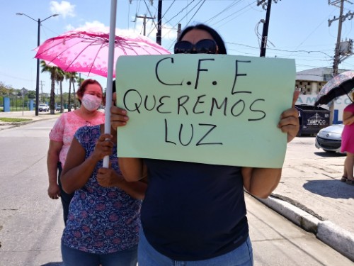 Al no tener respuesta de la Comisión Federal de Electricidad y no soportar más el calor, determinaron llevar a cabo esta acción, justo a la altura de la entrada del Polideportivo de Tampico, como medida de presión para que la Comisión Federal de Electricidad les restablezca el servicio, porque están afectadas 100 familias y aseguraron que no se van a quitar hasta que la Comisión Federal de Electricidad les haga caso.