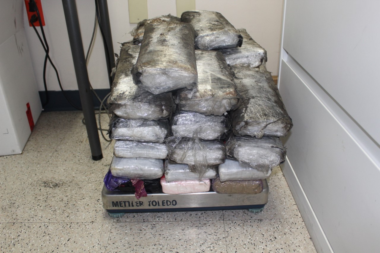 Se trata de un decomiso de 40.6 kilos de presunta cocaína (89.69 libras) que estaban ocultas dentro del remolque de un tractor marca Freightliner modelo 2003, cuyo manifiesto indicaba que se trataba de un embarque de piezas para aires acondicionados que se trasladaban desde México, droga que se ocultaba en 32 paquetes perfectamente compactados.