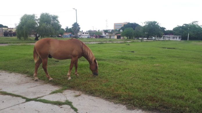 Altamira, Tamaulipas.- Un ambiente de insalubridad se registra en el amplio sector Miramar de Altamira, donde la presencia de caballos sueltos provoca montones de basura en la vía pública.