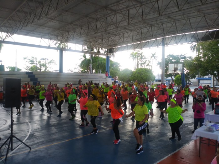 Indicó que hacen zumba de lunes a sábado están de 8 a 9 de la mañana y 18:30 a 19:30 horas en la plaza de CANACINTRA, por plaza Laguna, contando actualmente con 120 personas.