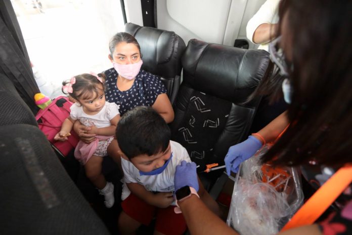 Nuevo Laredo, Tamaulipas.- Luego de un año de estarse aplicando la vacuna transfronteriza contra el Covid-19, un recuento indica que desde entonces ya se aplicaron 107 mil 422 dosis, lo que forma parte del compromiso adquirido por la presidente municipal de esta ciudad, Carmen Lilia Canturosas.