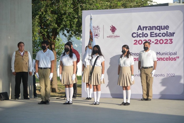 Nuevo Laredo, Tamaulipas.-Al iniciar el nuevo ciclo escolar 2022-2023 al que se incorporaron más de 100 mil estudiantes de todos los niveles, la presidente municipal Carmen Lilia Canturosas se presentó en la preparatoria municipal José Vasconcelos para dar inicio a las actividades educativas.