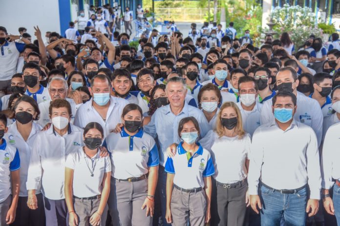 Tamapico, Tamaulipas.-Al encabezar la ceremonia de inicio del nuevo ciclo escolar 2022-2023 efectuado en el Colegio de Bachilleres número 15 de Tampico, el Presidente municipal Chucho Nader destacó que además del material didáctico, y la capacitación continua de los docentes, el retorno a clases implica un nuevo modelo de bioseguridad.