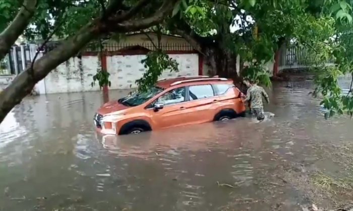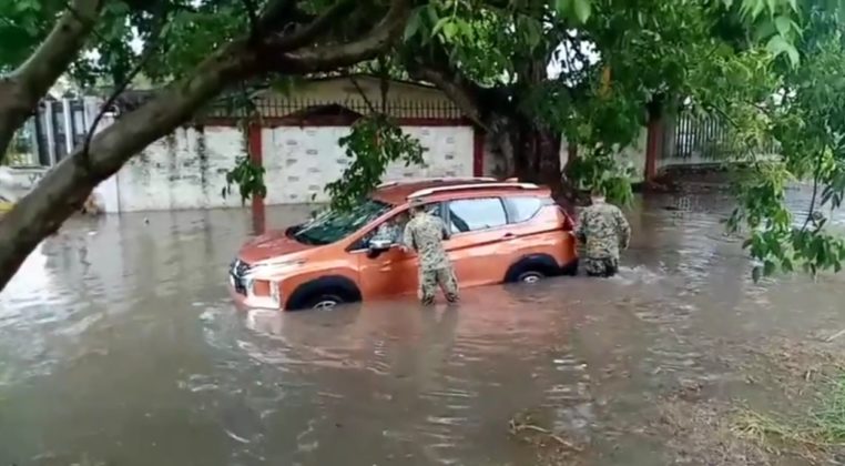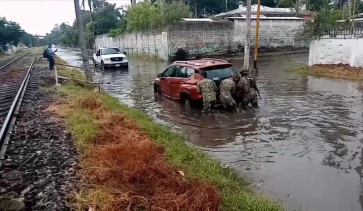 Al igual que en este lugar, cerca de las instalaciones del seguro social, un vehículo fue arrastrado por la corriente, sin que hubiera personas lesionadas.